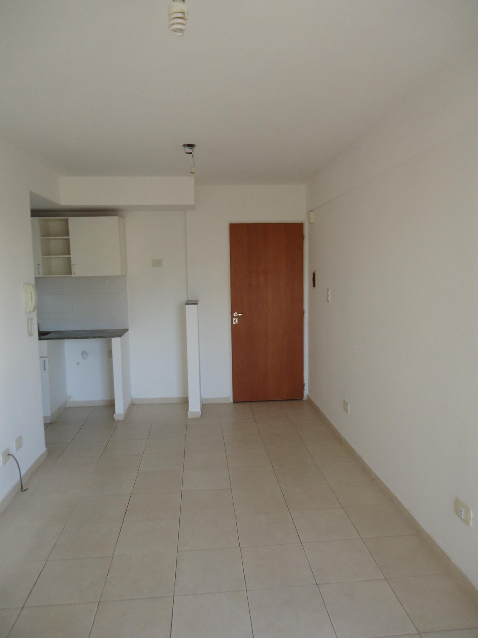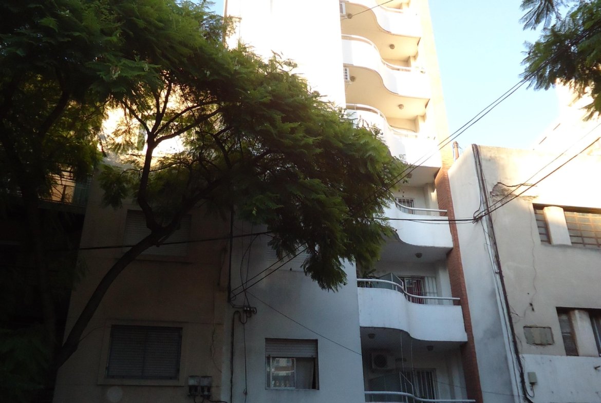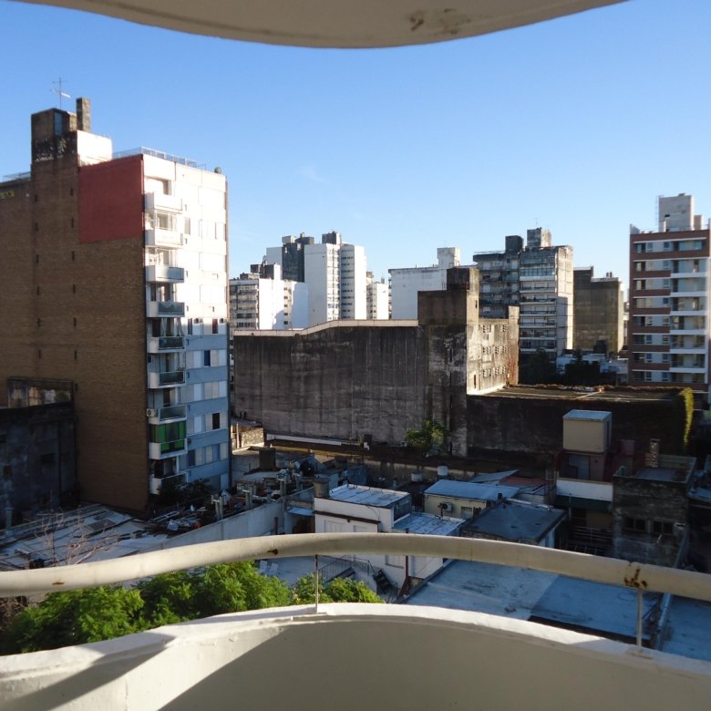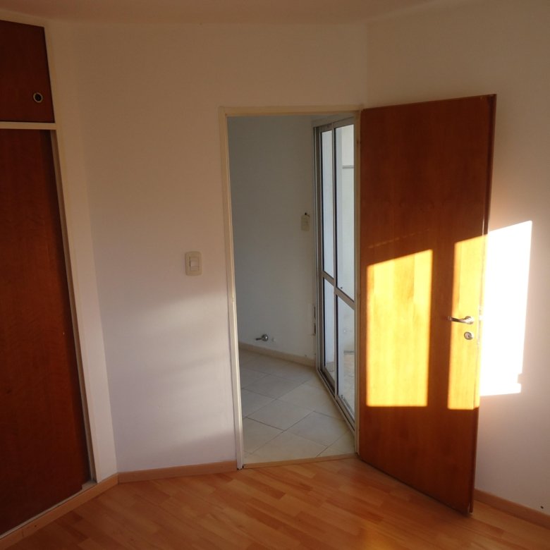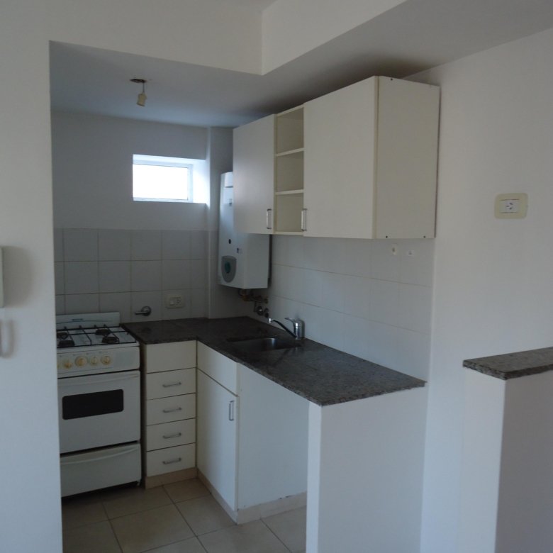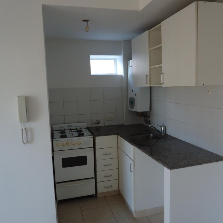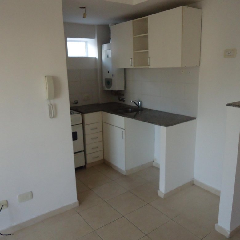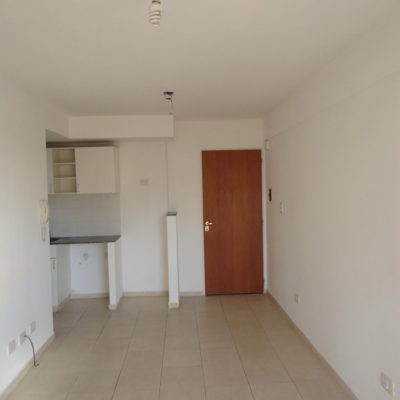 Depto externo con balcón, living con la cocina integrada, dormitorio con placard y baño completo.