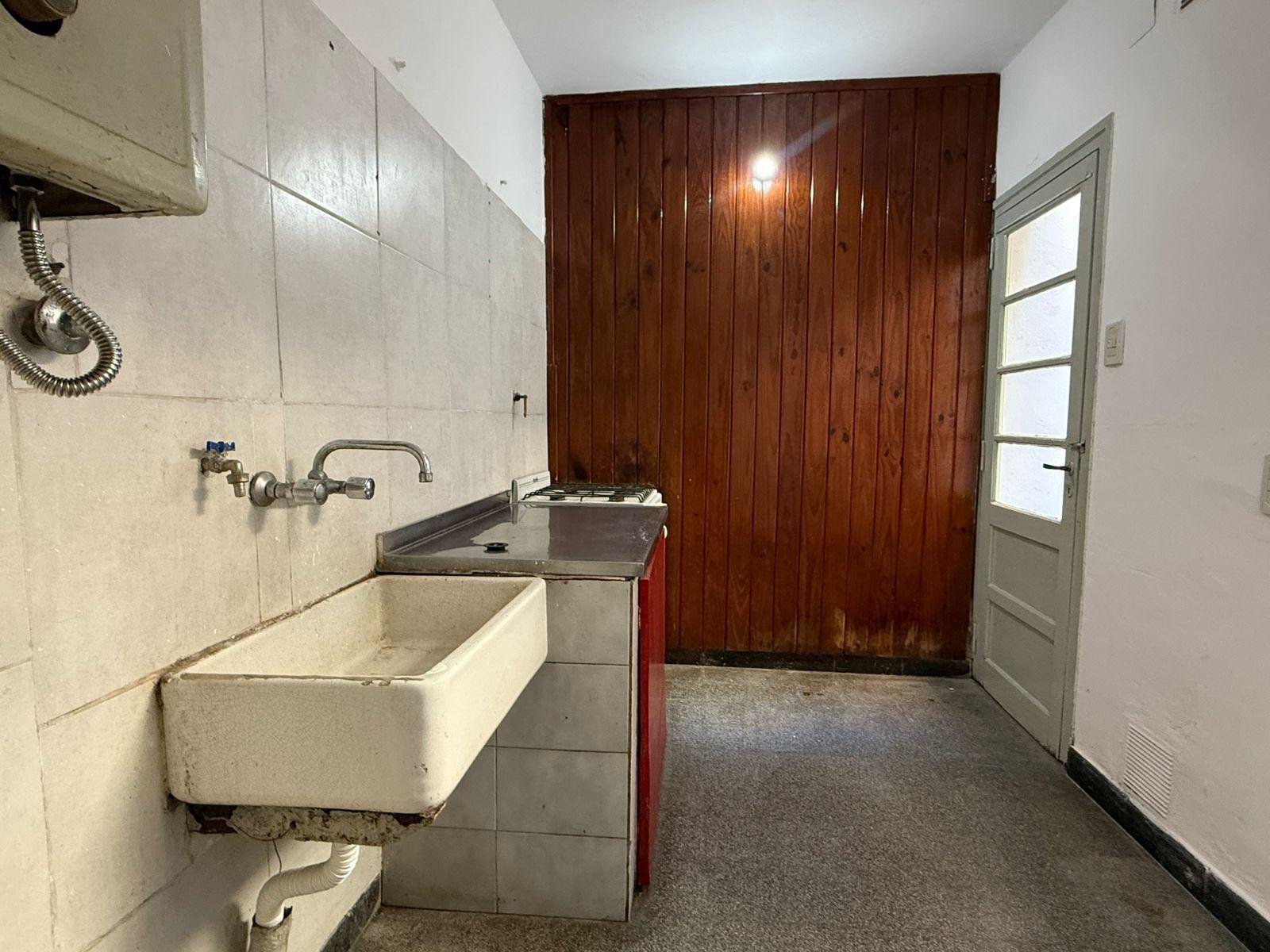 Depto de pasillo, antiguo en planta baja, 35 m² aprox. Ingreso a hall , pequeña cocina , un dormitorio sin placar (posibilidad de segundo anulando living comedor), pequeño patio 3×4 mts. No posee terraza .