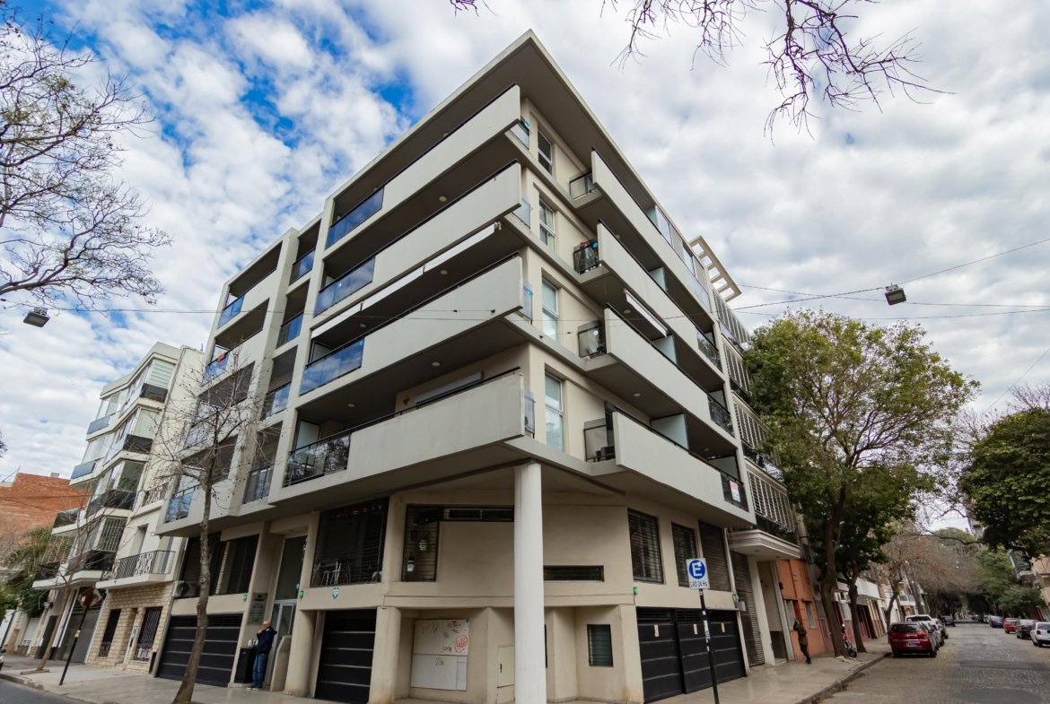 Ingreso living comedor con salida a balcón corrido sobre calle Zeballos, cocina integrada, baño con bañera, dormitorio con placard y salida a balcón.
