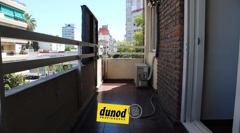 Departamento Bauen 21. Córdoba/Oroño. Living comedor con salida a balcón sobre calle Córdoba. Cocina independiente tipo americana, sector de lavadero, baño con ducha, dormitorio 3×3 aprox con placard y aire acondicionado. Segundo dormitorio mas chico con placard.