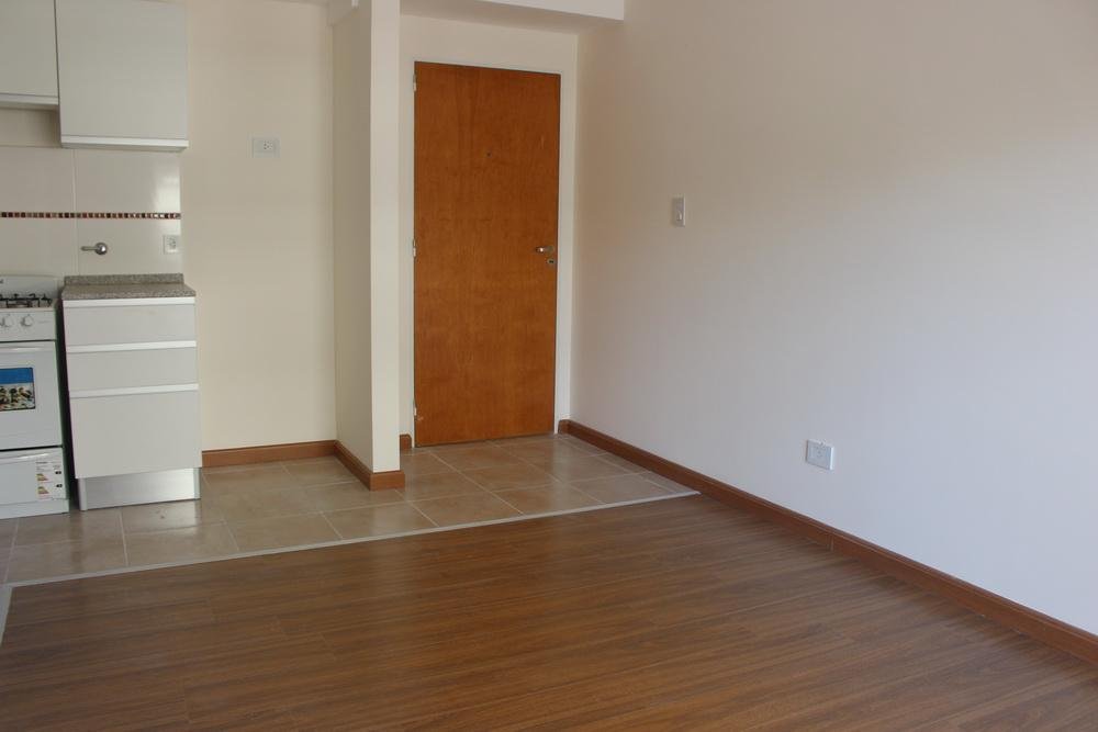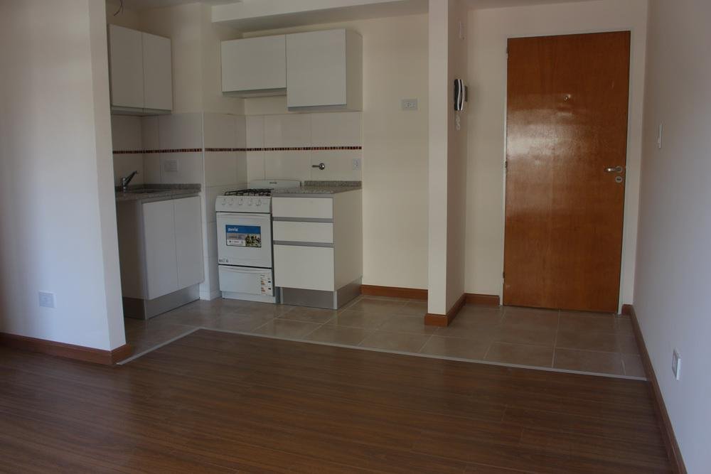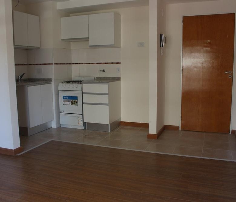 Ingreso a living comedor con cocina integrada. Baño completo . Dormitorio en esquina placard completo. Amplio balcón. Unidad en esquina. No apto mascotas.