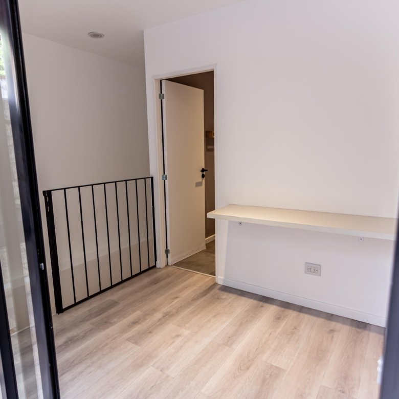 En planta baja cuenta con un amplio living comedor, cocina con salida directa al patio, baño completo con ante baño y un dormitorio con placard. En planta alta se encuentra un dormitorio con placard, un segundo baño completo y un cómodo espacio de escritorio.