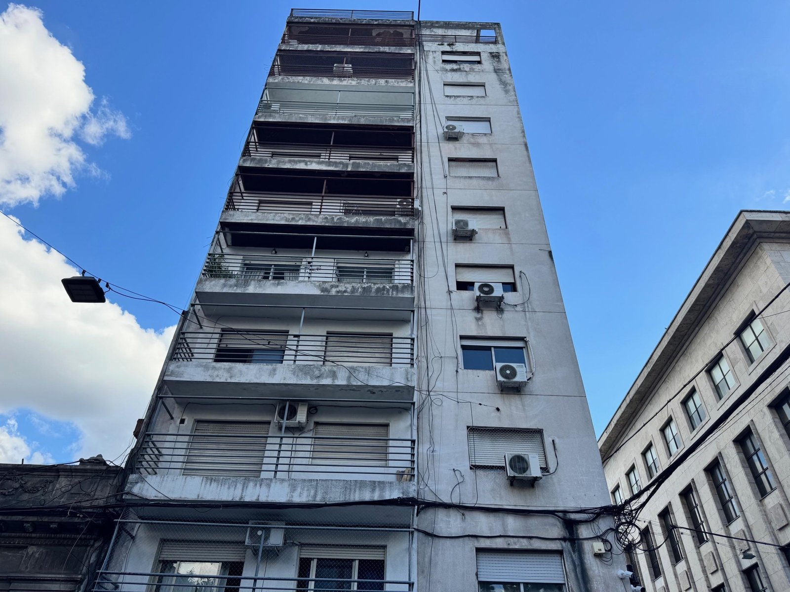 El edificio cuenta con 10 pisos, accesibles mediante dos ascensores, y ofrece servicios esenciales como agua corriente, gas natural, electricidad y pavimento. Además, el departamento dispone de espacios comunes como un living comedor y áreas adicionales como una cocina, lavadero, y un balcón terraza.