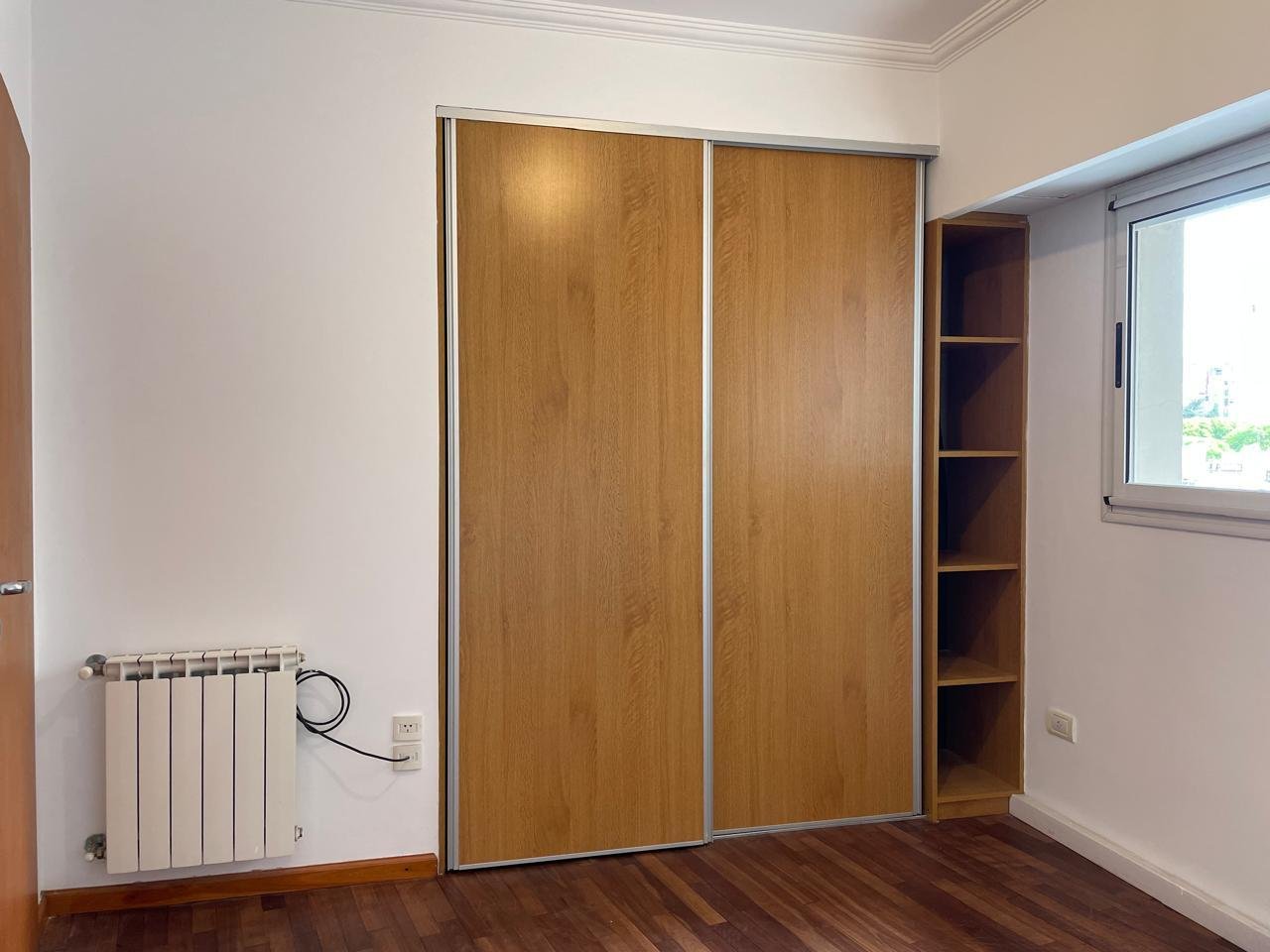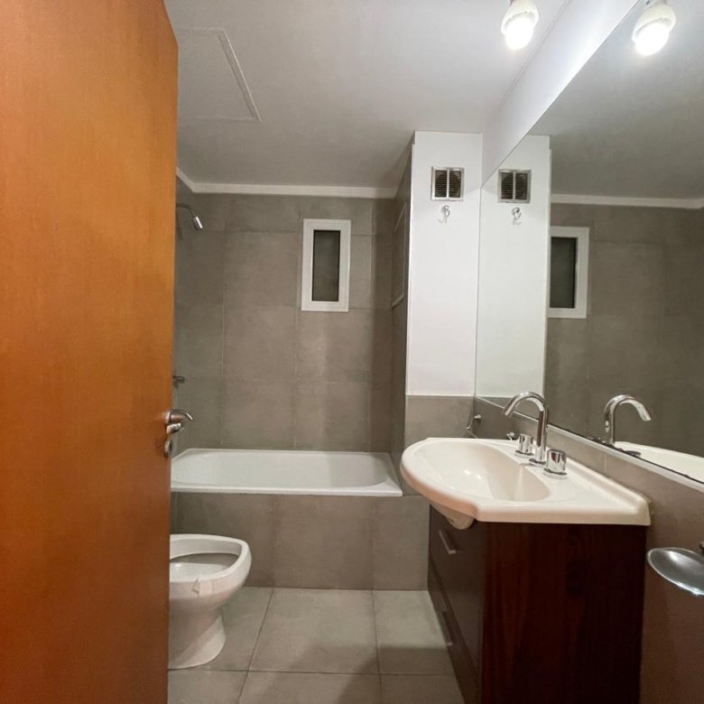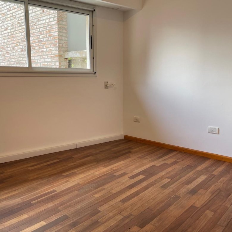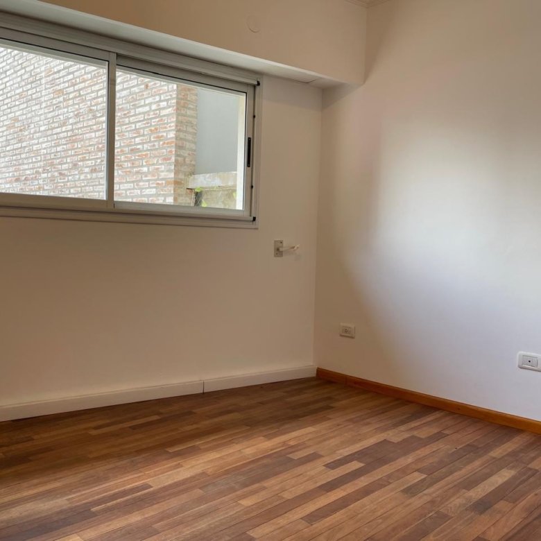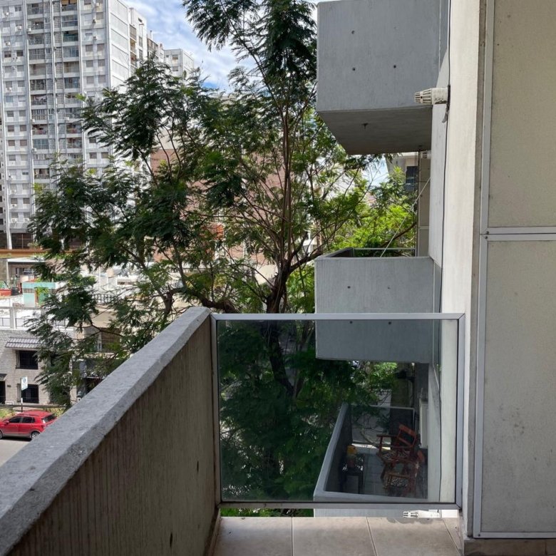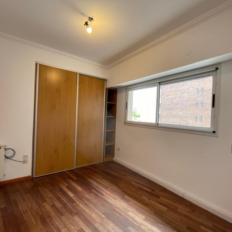 Balcón amplio al frenteEstanteria empotrada Baño completo con bañera.Habitación piso parquet con placard y estantes.