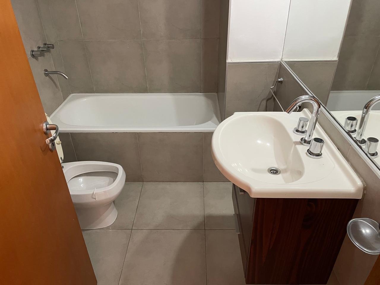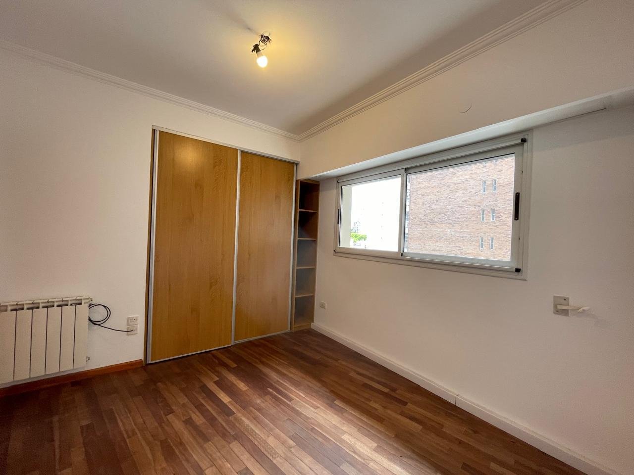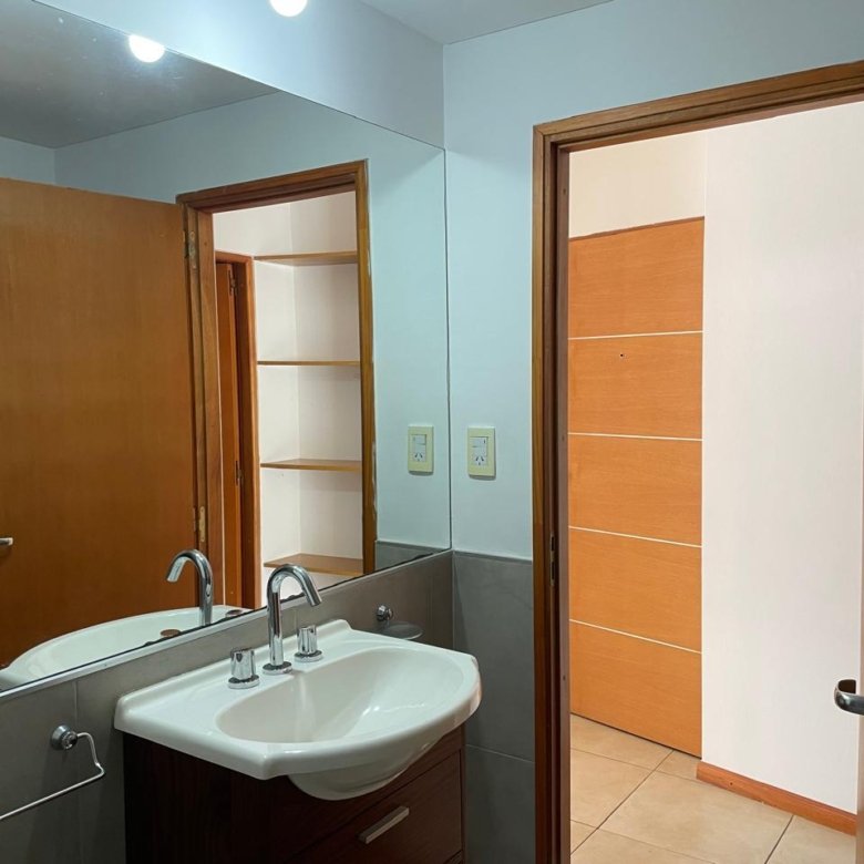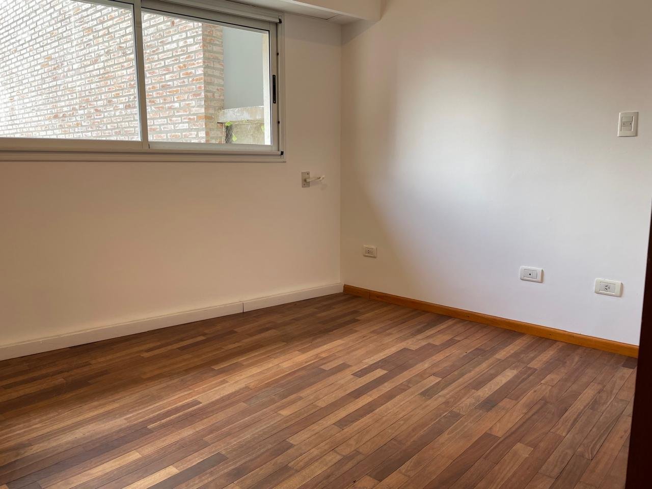 Balcón amplio al frenteEstanteria empotrada Baño completo con bañera.Habitación piso parquet con placard y estantes.
