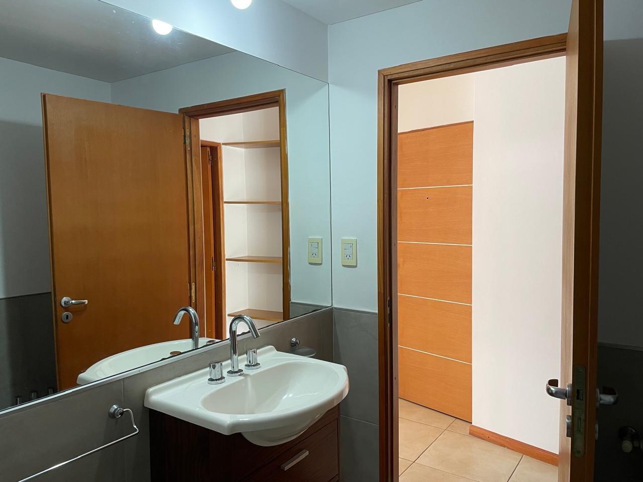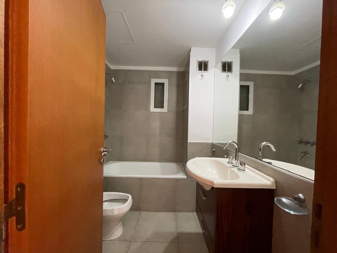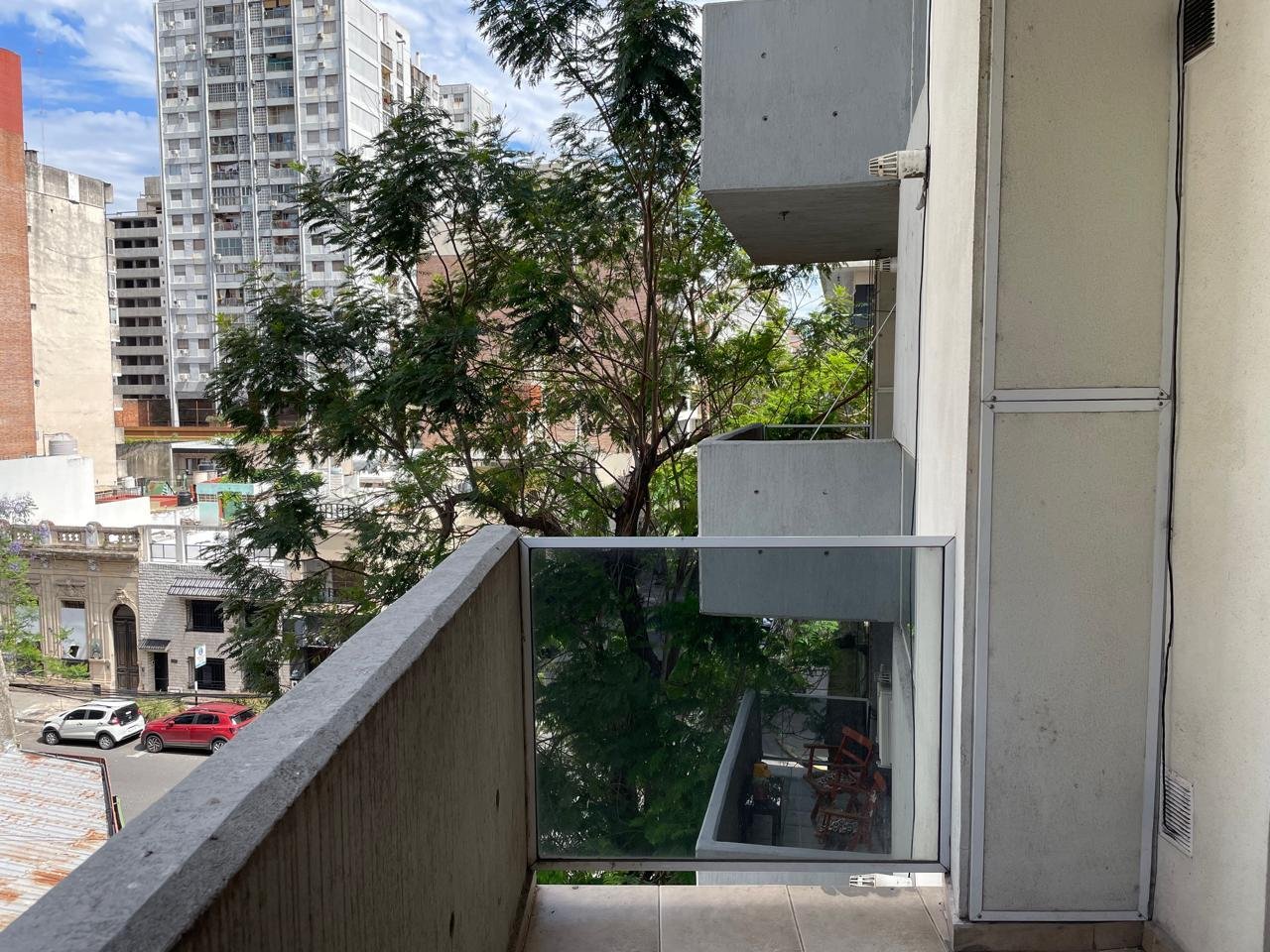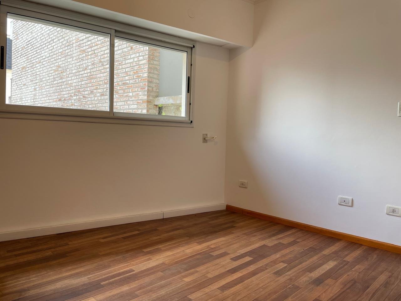 Balcón amplio al frenteEstanteria empotrada Baño completo con bañera.Habitación piso parquet con placard y estantes.