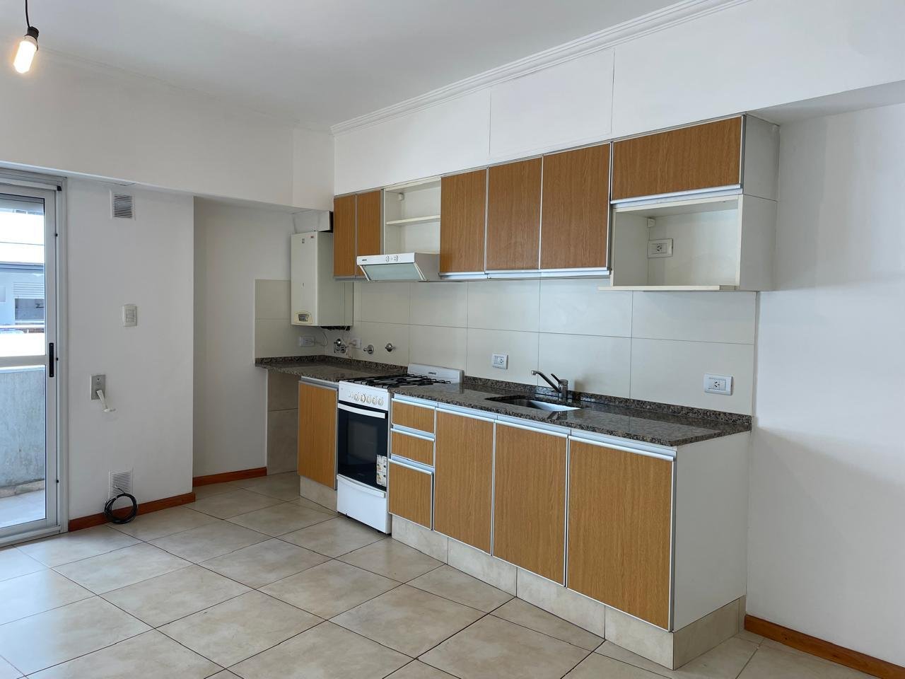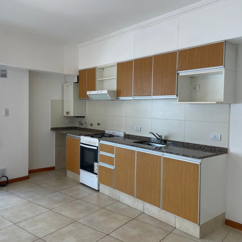 Living- comedor con Cocina integrada. Cuenta con alacena y bajo mesada amplia. Extractor y cocina a gas. Calefacción y agua caliente por caldera, espacio para lavarropas.
