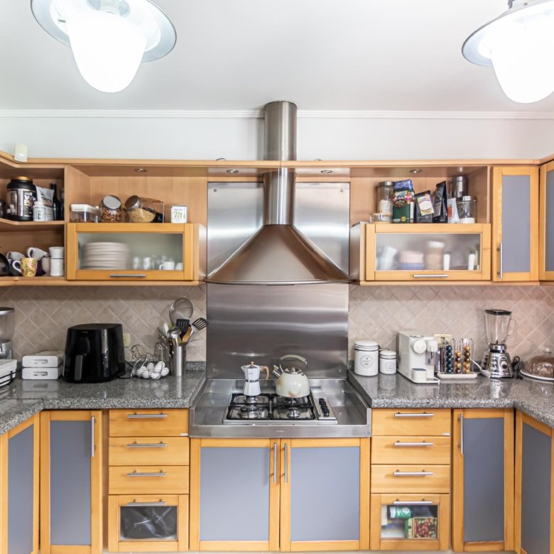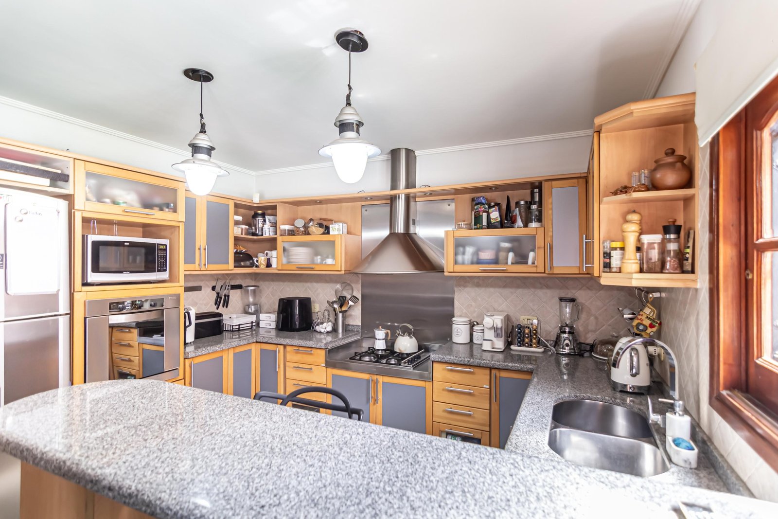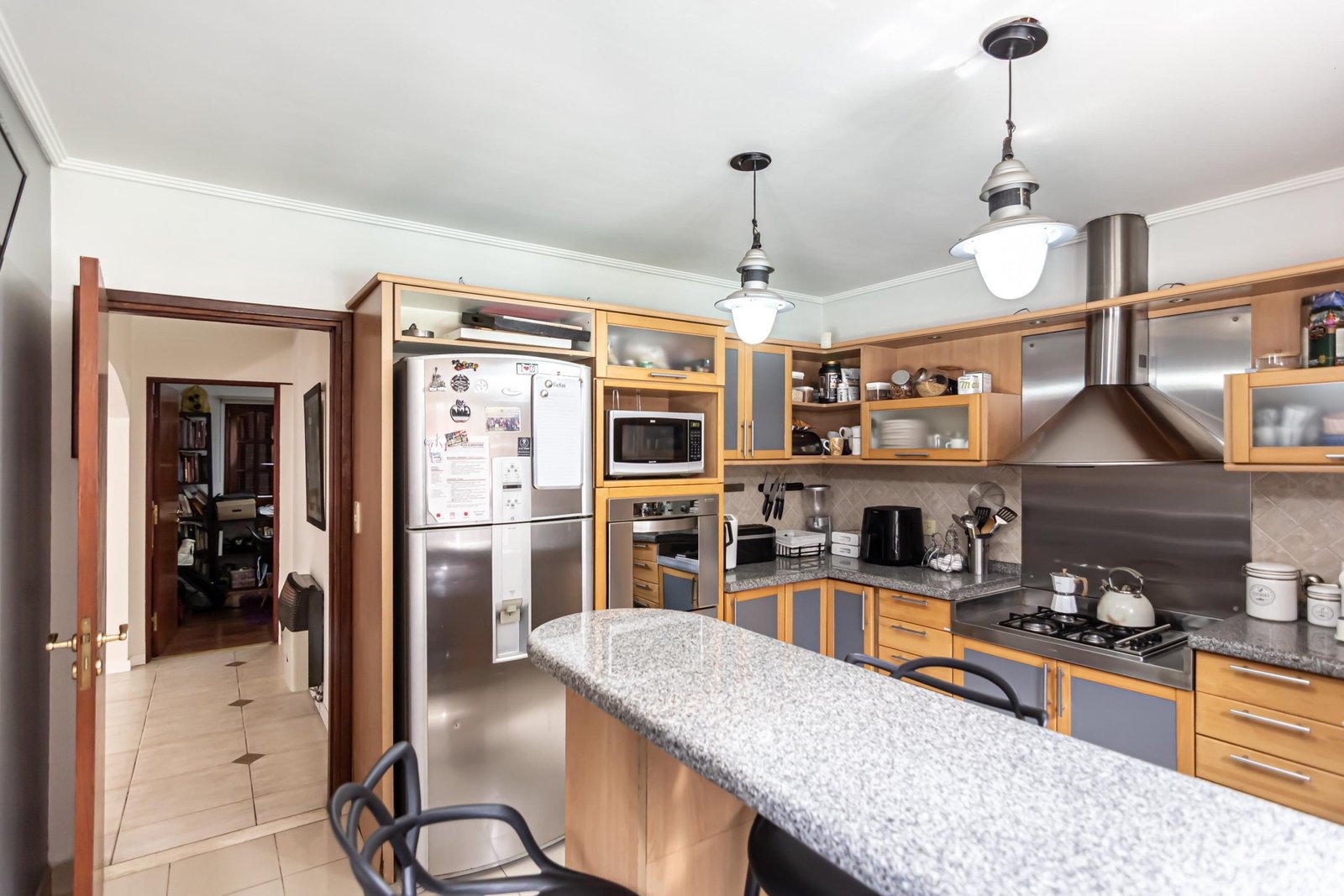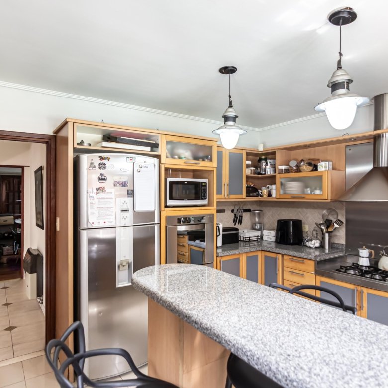 Cocina con barra desayunadora de amplia dimensión