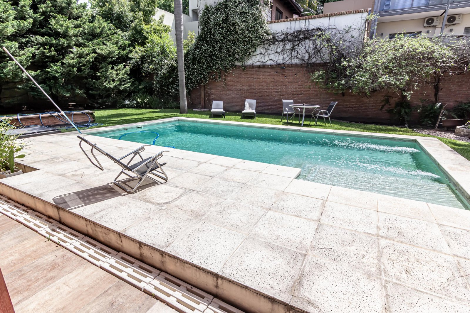 Lavadero, amplio Jardín con toilette y pileta de 8×4.