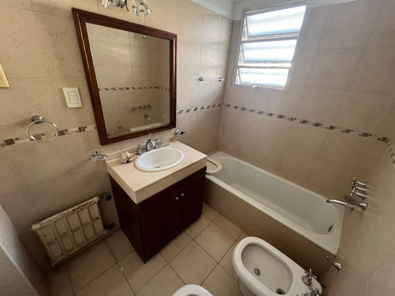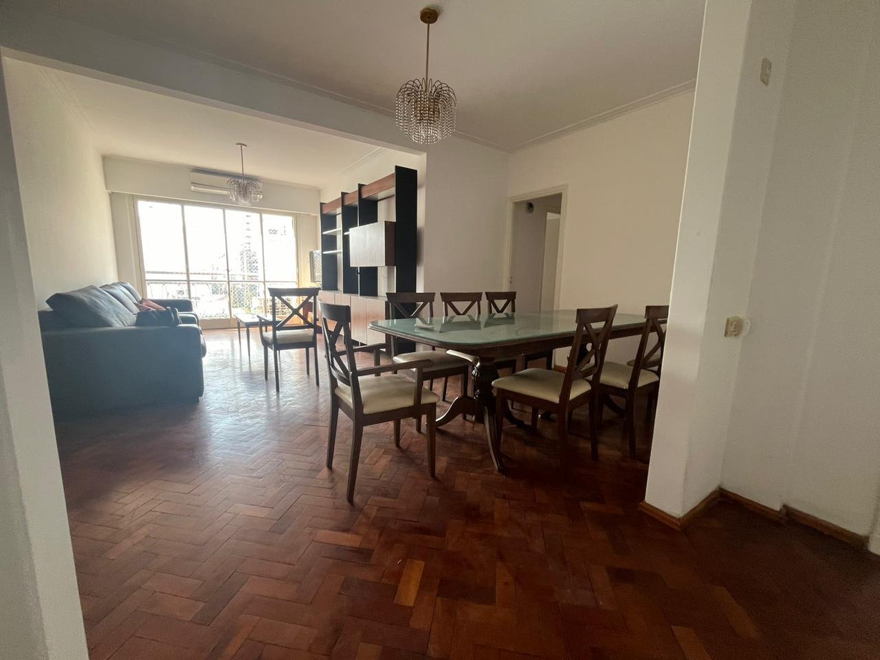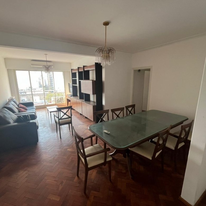 Departamento con ingreso a living comedor espacioso con un amplio ventanal con dos dormitorios o comodín / dormitorio de servicio, cocina independiente totalmente reciclada con ingreso de servicio, lavadero independiente y baño de servicio, pasillo distribuidor con espacios de guardado, dormitorios con placares empotrados y principal con ventanal y aire acondicionado . Pisos de parquet
