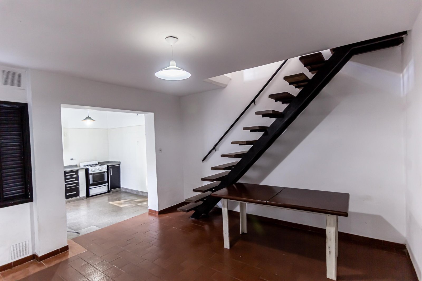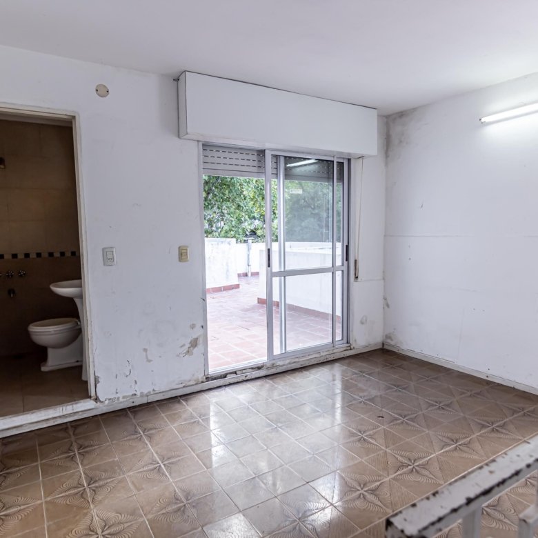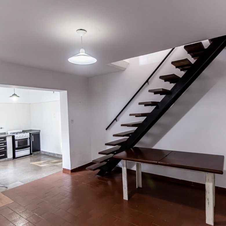 Desde el living comedor se accede a una escalera que conduce a la terraza, con un espacio de quincho y baño completo.