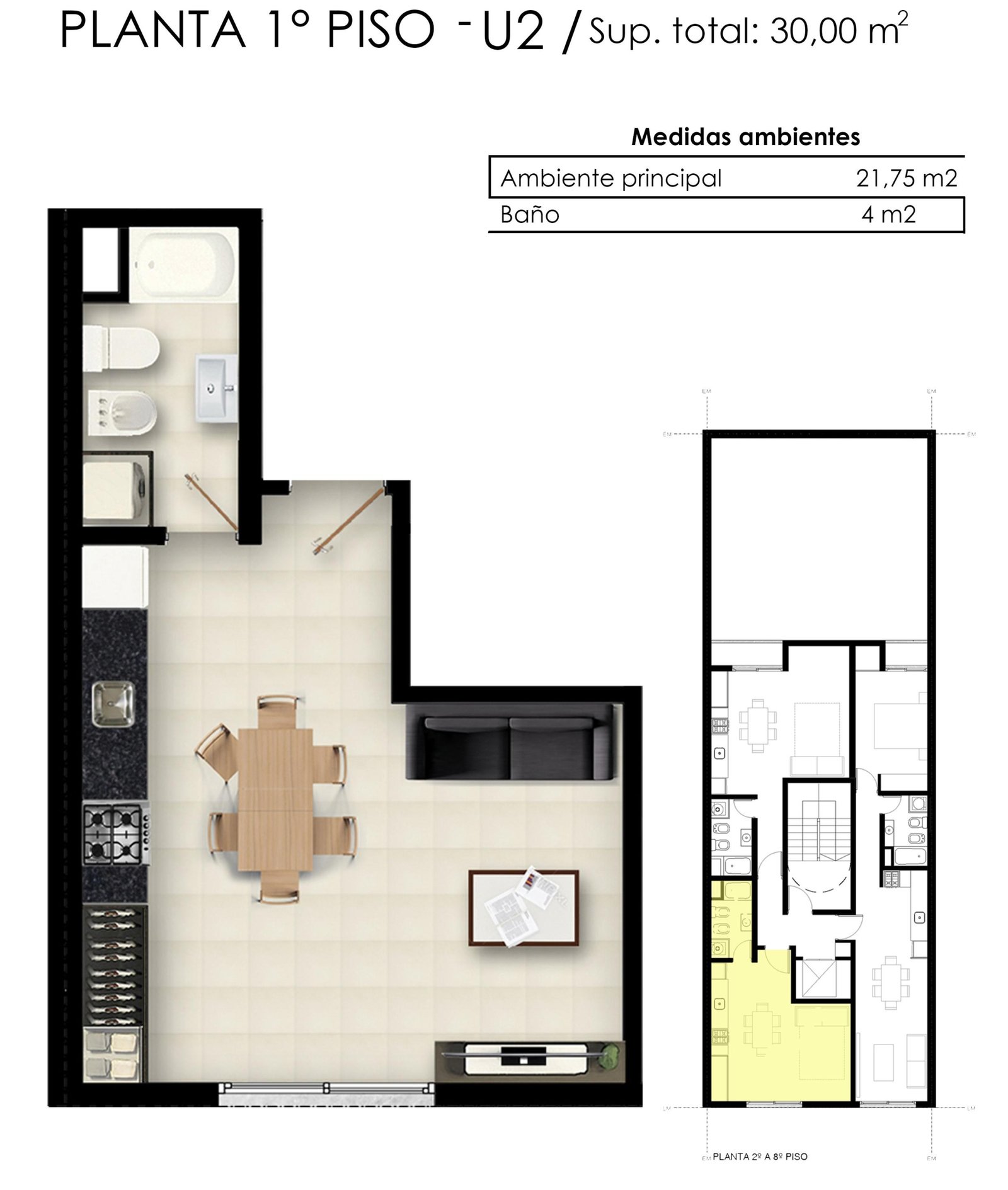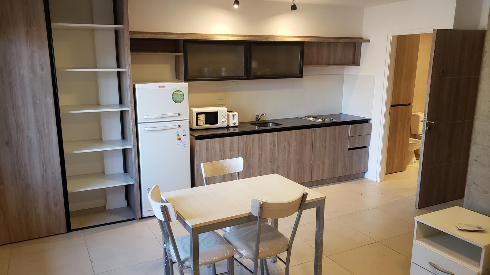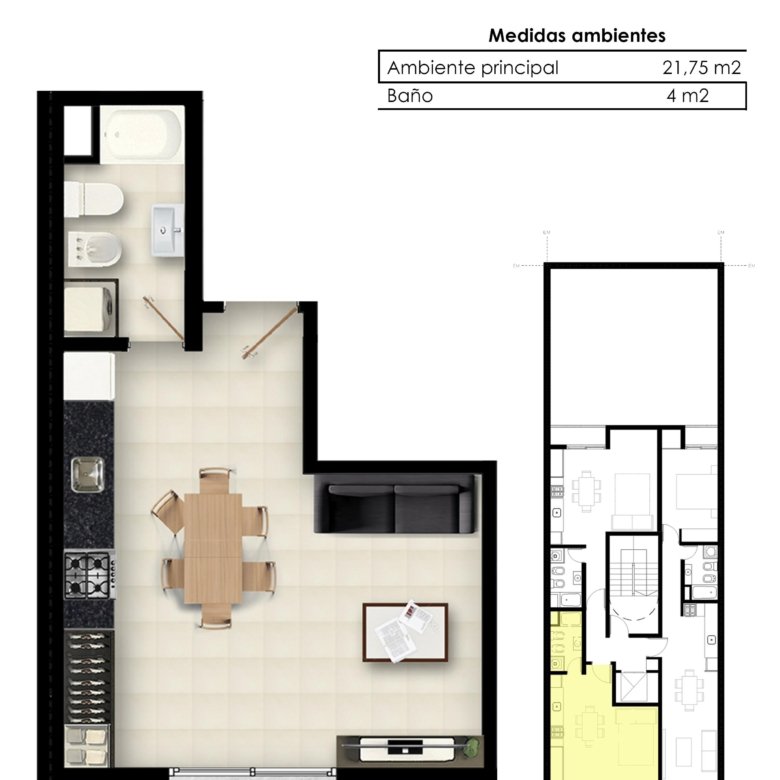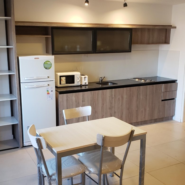 Al ingresar, será recibido por un luminoso living comedor que se integra perfectamente con una cocina moderna, equipada con electrodomésticos de primera línea, ideal para disfrutar de la vida urbana. El baño incluye una elegante bañera, brindando un toque de distinción adicional.