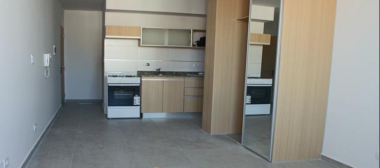 Departamento monoambiente. Edificio MSR. Ambiente único con salida a balcón al contrafrente. Conexión para lavarropas, baño completo. Ropero con estantería y cajones. Excelentes terminaciones. Edificio con quincho y pileta