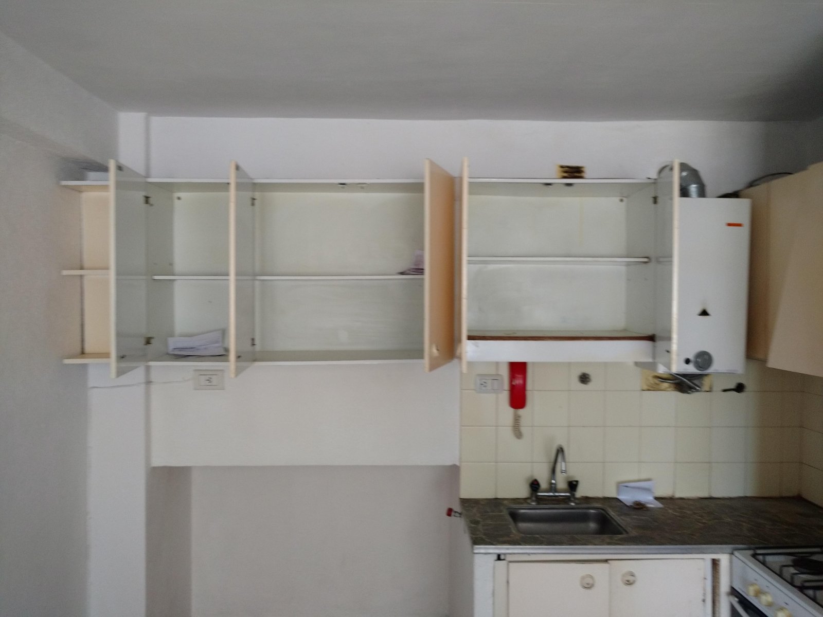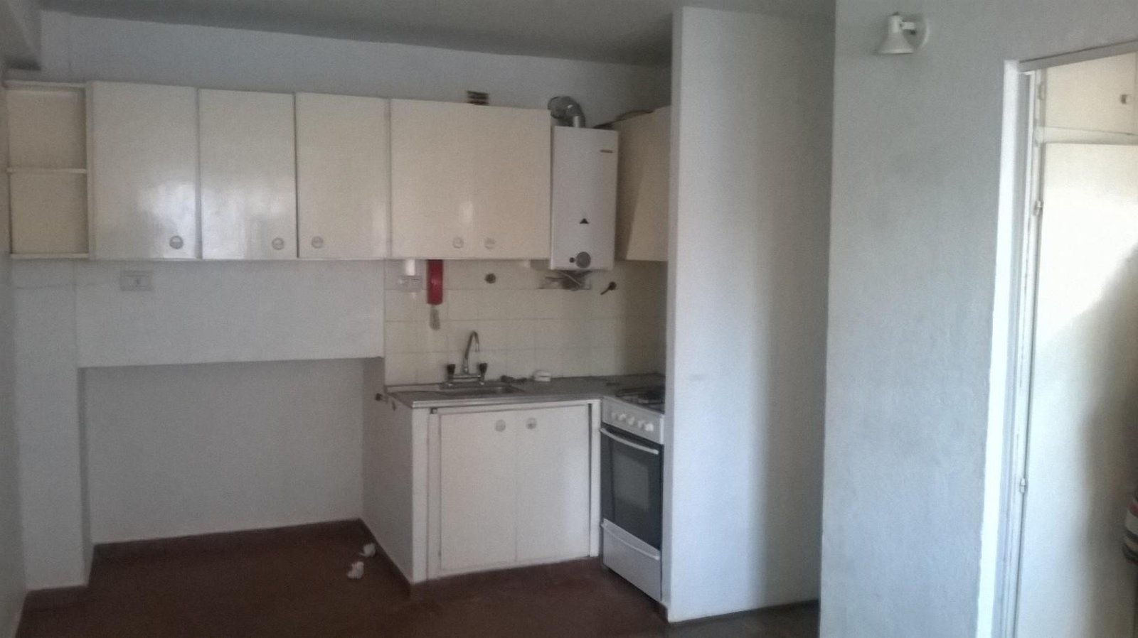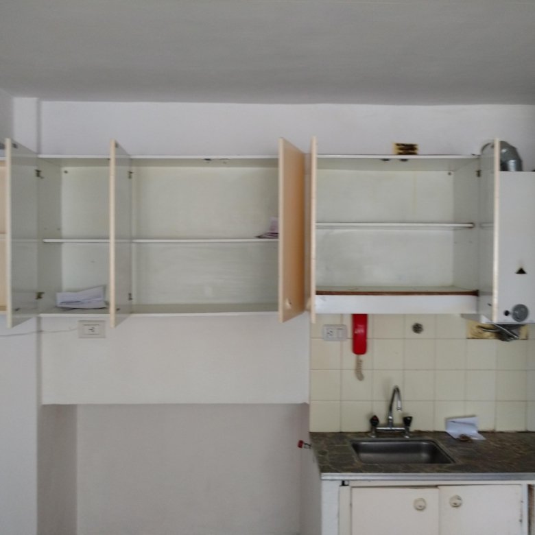 Ingreso a living comedor con cocina integrada. Ambiente único dividido. Baño con ducha